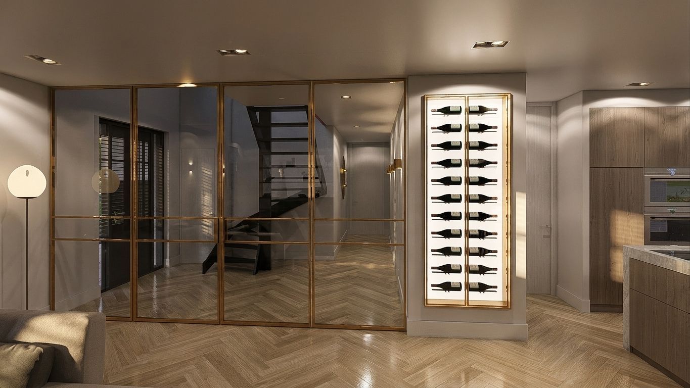 In het souterrain bevinden zich drie slaapkamers met directe toegang tot een sfeervolle patio, wat zorgt voor prettig daglicht. De begane grond beschikt over een ruime woonkamer, een moderne keuken. Op de eerste verdieping bevinden zich twee slaapkamers, waaronder een royale hoofdslaapkamer met inloopkast, een tweede badkamer.