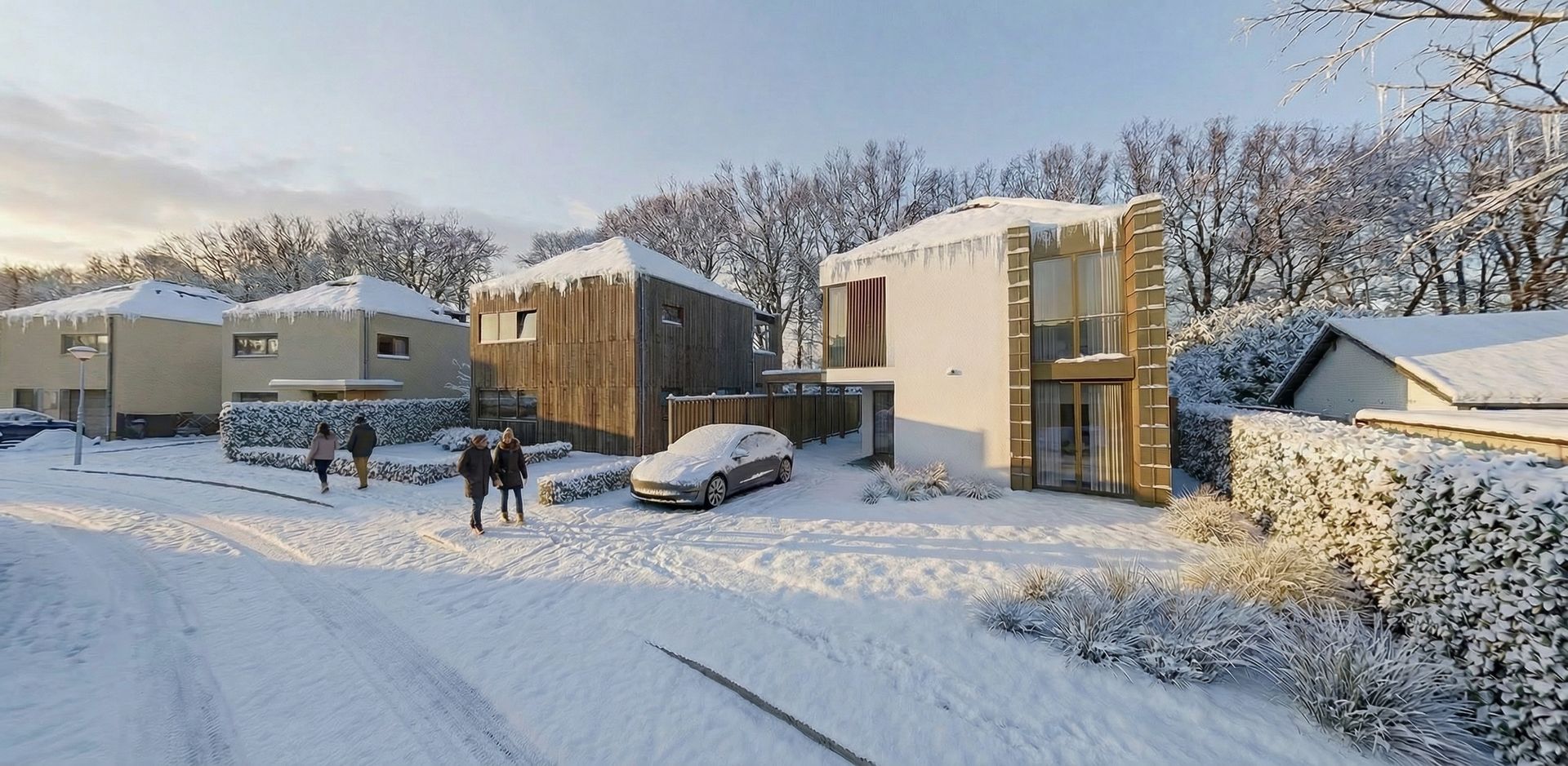 In Lemiers, in het prachtige Limburgse landschap, worden twee moderne woningen naast elkaar gerealiseerd. De woningen worden gebouwd met de nieuwste bouw- en installatietechnieken en zijn volledig ontworpen als 0-op-de-meter woningen.